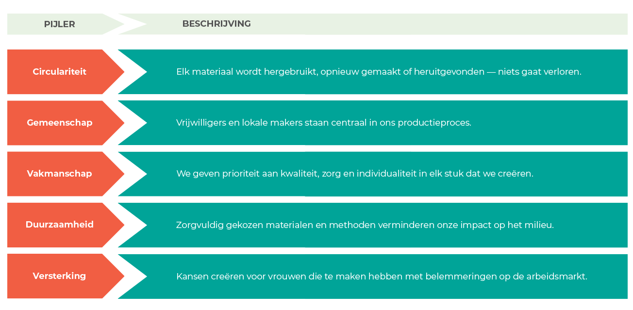 Een duurzame toekomst voor zowel vrouwen met een afstand tot werk als kleine mode-/lifestylemerken in Amsterdam.Onze missie